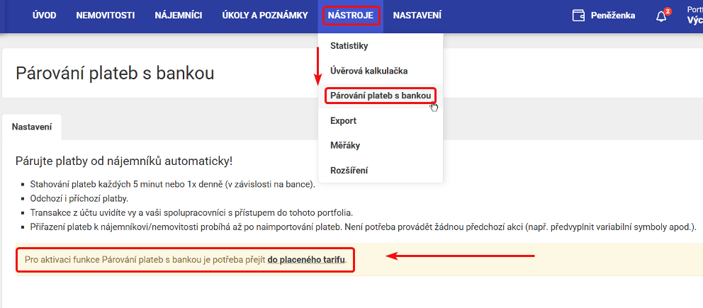 Pokud máte nastavený placený tarif, pokračujte v nastavení propojení bankovního účtu.