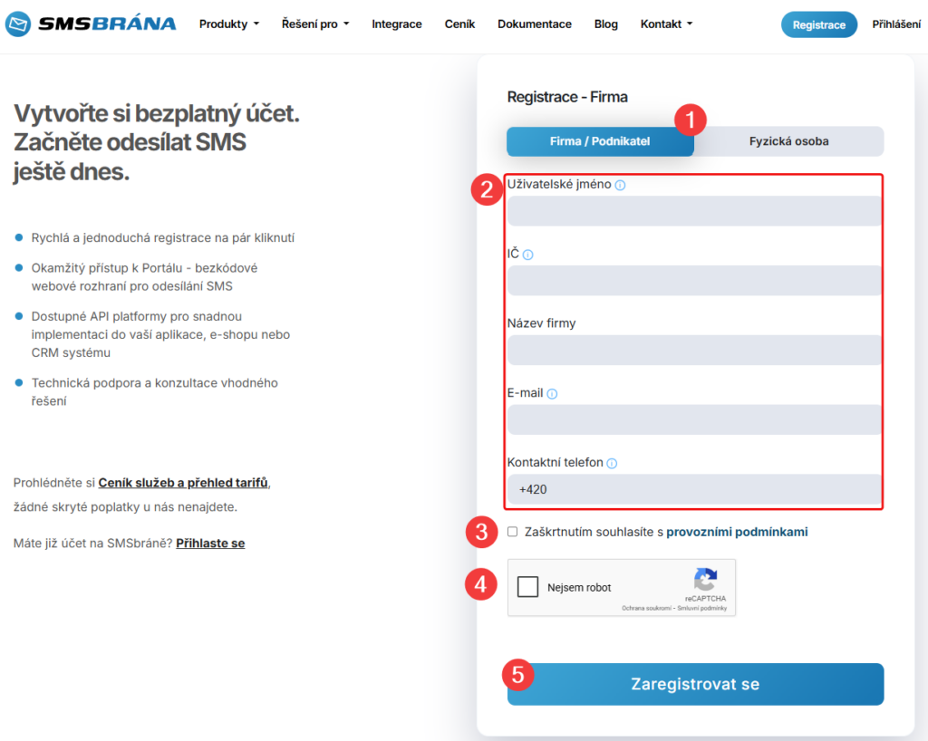 Po registraci potvrďte vytvoření účtu v e-mailu, který Vám přijde od smsbrana.cz, a poté se přihlaste.