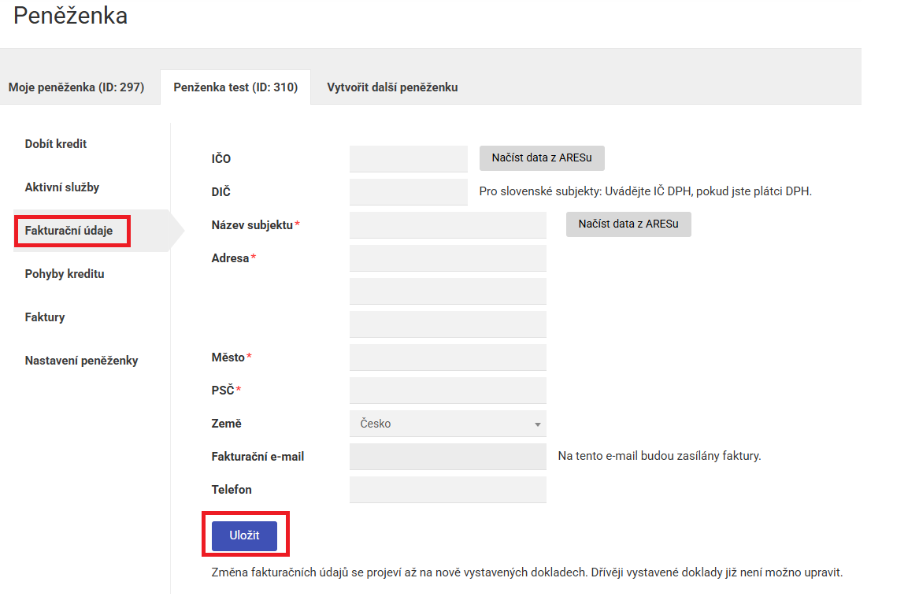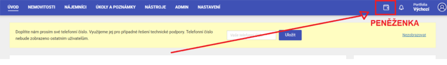 Peněženka je nástroj, kterým obsluhujete platby a dobíjení kreditu.