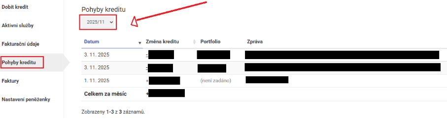 2) Zde dohledejte pomocí přepínače data příslušné časové období: